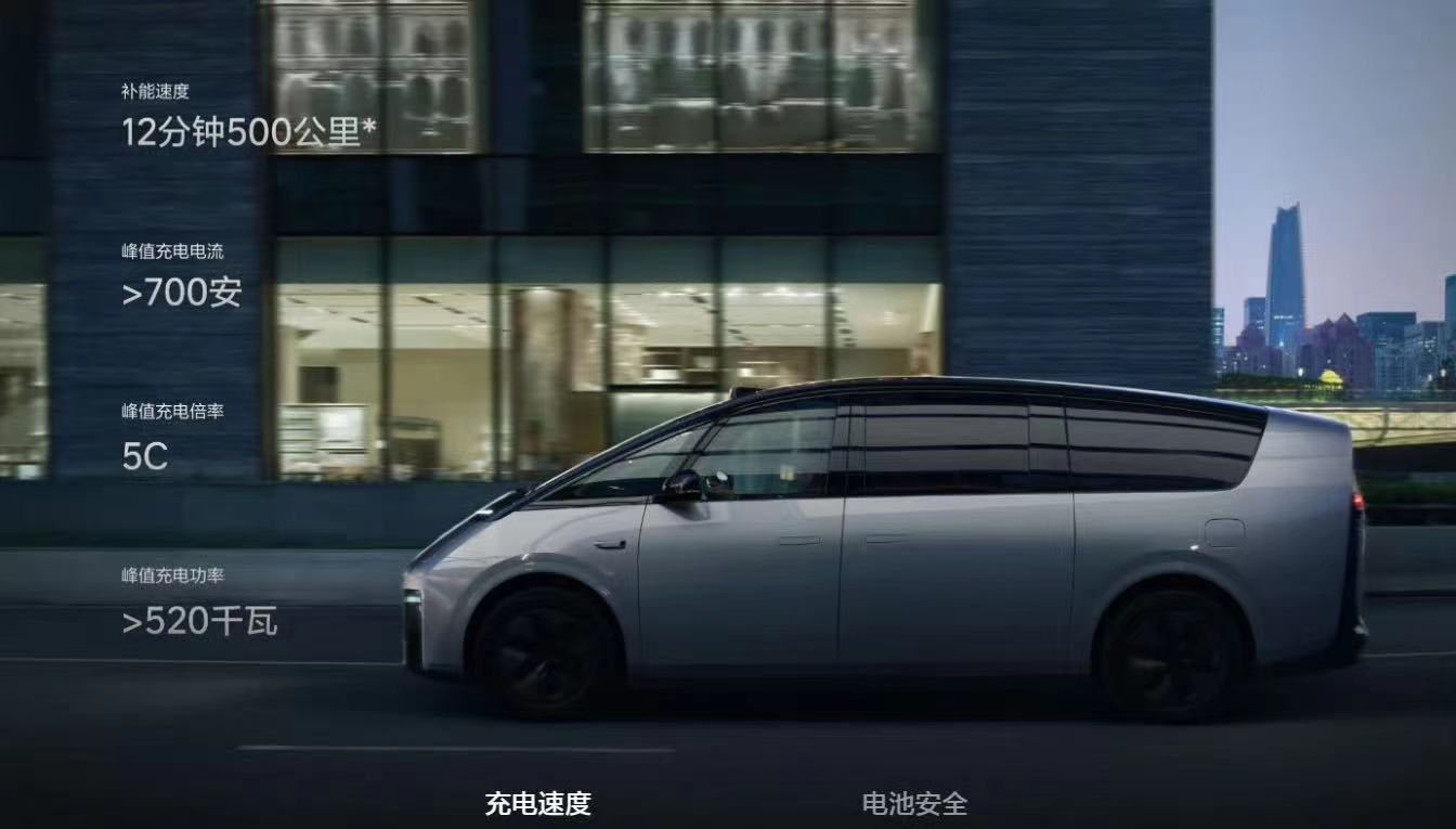 動力及續(xù)航方面,理想Mega預計將配備一塊102.7千瓦時的5C麒麟電池,最大續(xù)航里程可達700公里,補能上可實現(xiàn)充電12分鐘續(xù)航增加500公里。